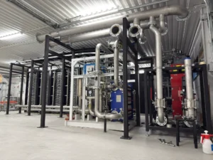 The piping was fabricated on site according to the plans. At the same time, transformer installations and feeder cable routing were completed. The overall system architecture began to take shape well in advance, even though delivery delays extended the schedule. The heat pump and liquid cooler arrived as agreed at the end of November, allowing the final connections to be completed.